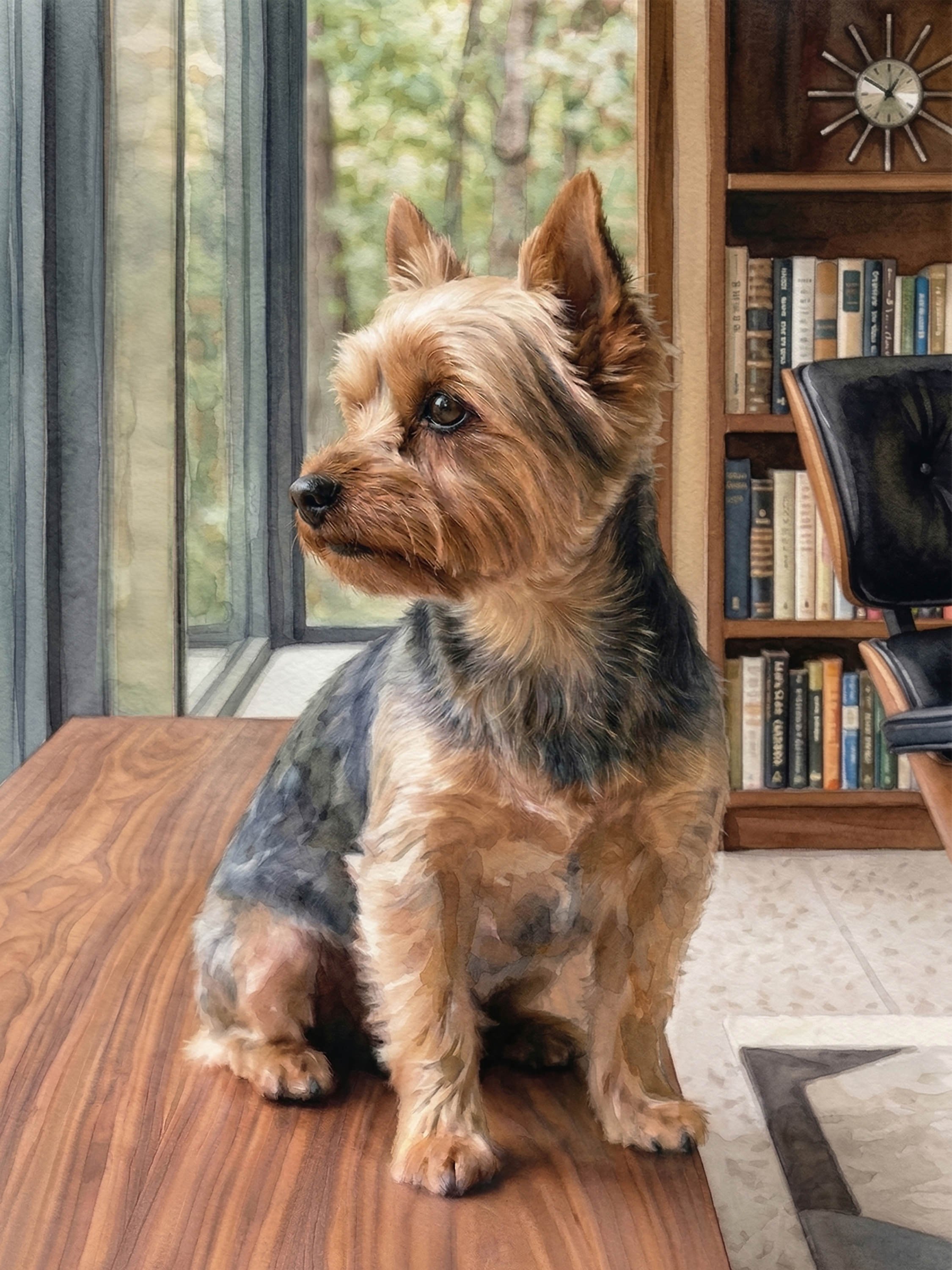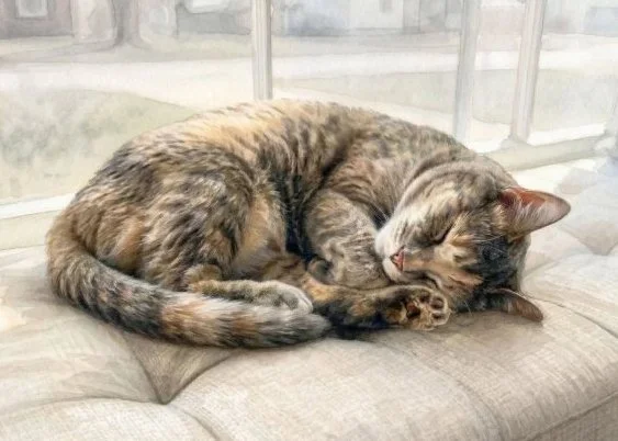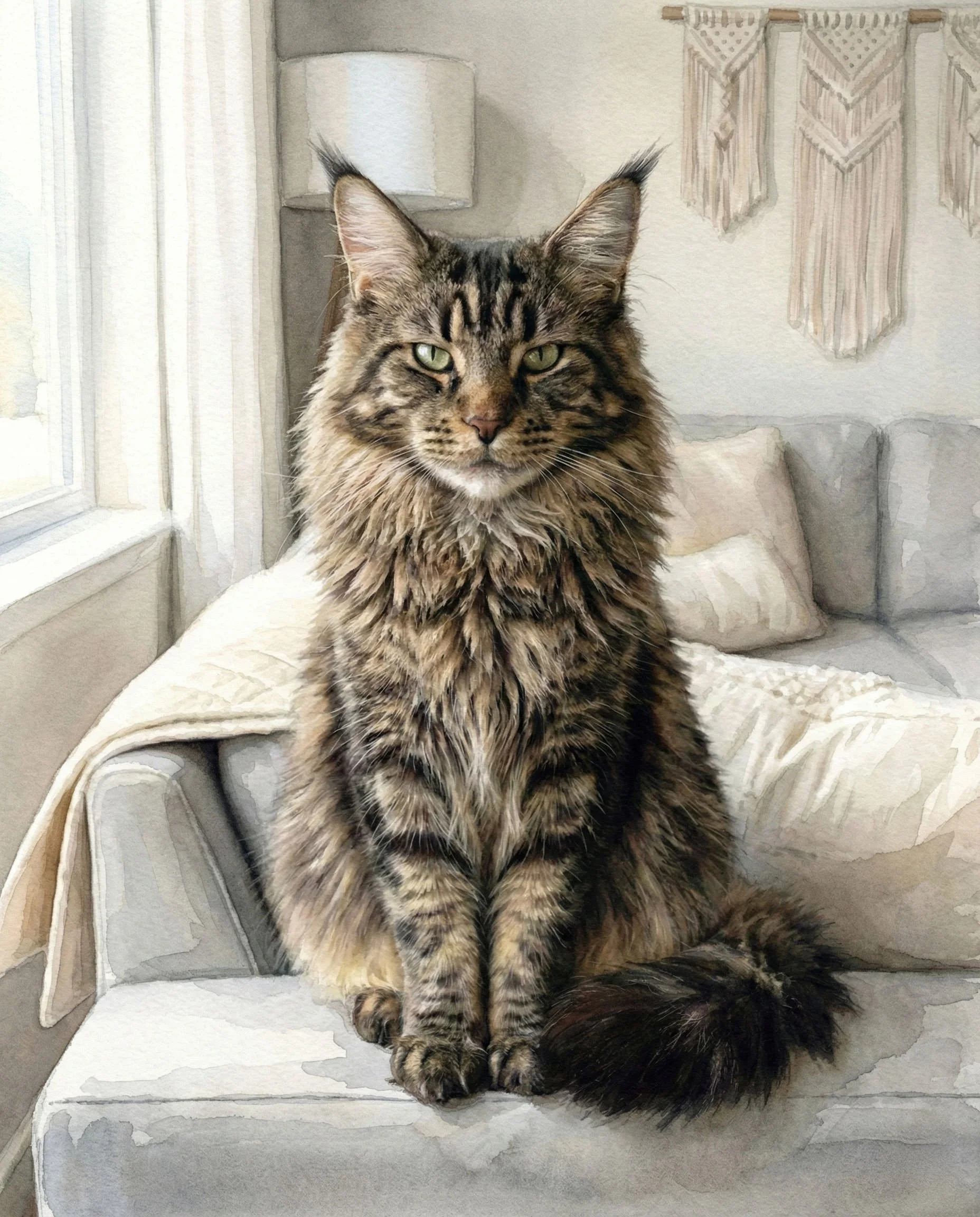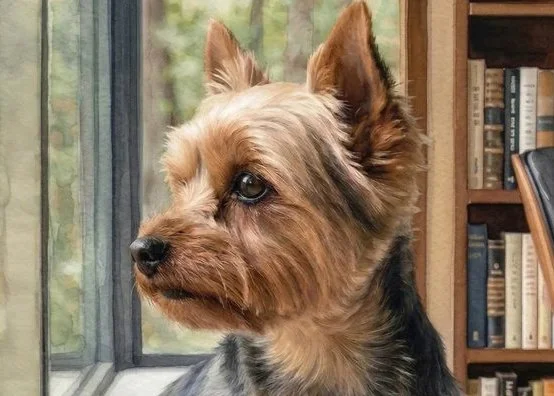 If you are wanting a refined environmental portrait of your pet that is created in a realistic watercolor style and designed to feel at home in your living space… you are in the right place