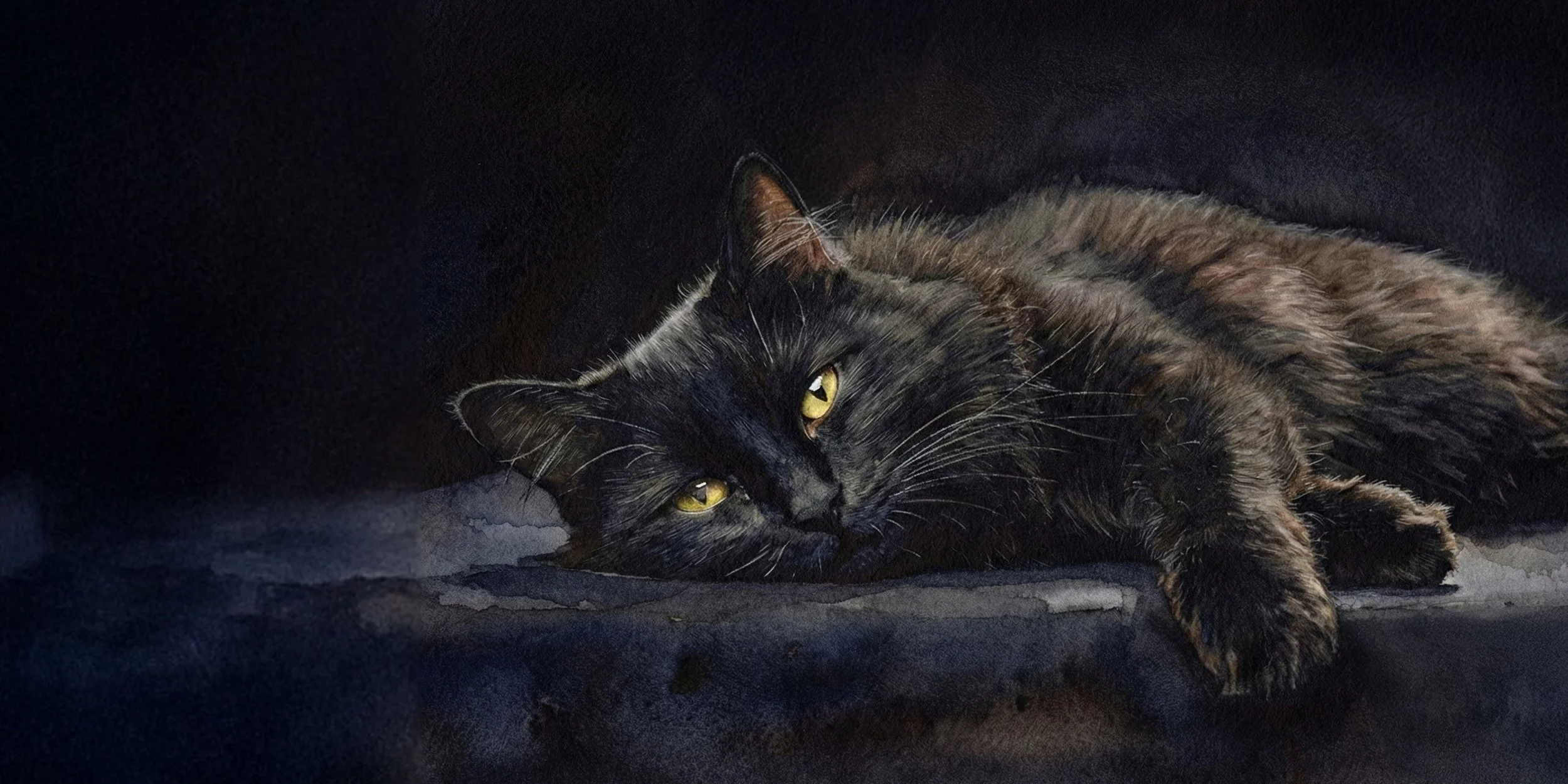 Being married and having three children, we (like so many families) somehow began collecting pets over the years. At our peak it felt like I was operating my own private zoo with three cats, two dogs, a bearded dragon lizard, two guinea pigs, one ball python, one green anole, and one pygmy desert hamster... all housed under one roof. I had the camera equipment, I had the pets, and I had the skills to turn the photos of said pets into watercolor paintings. You can probably guess what happened from there.