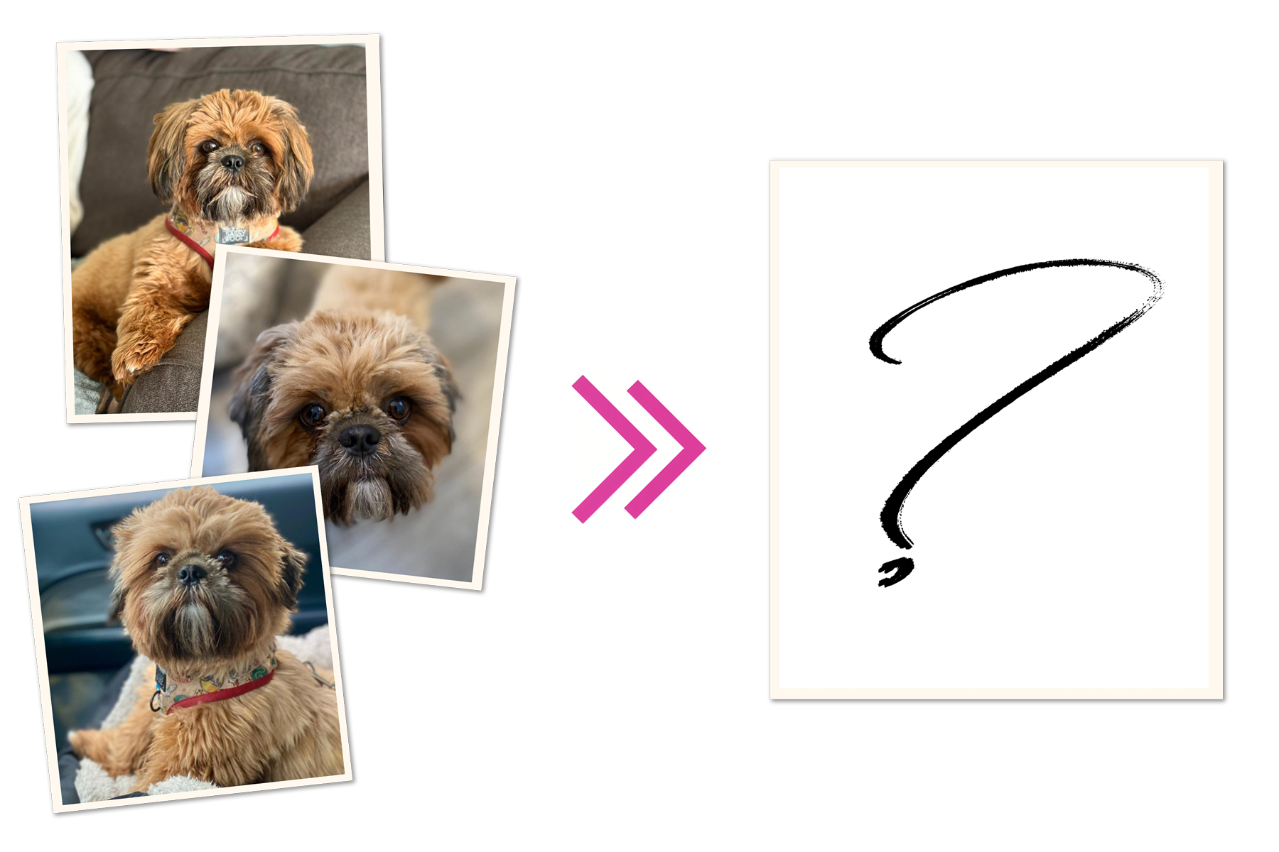 We live in an age of wonders and with the power of AI it is now possible to transform lower quality snapshots of a pet into a "synthograph" (synthetic photograph) of your pet in pretty much any pose, in any setting, and staged with an ideal lighting setup. The ability to use such an image ensures the best possible outcome.